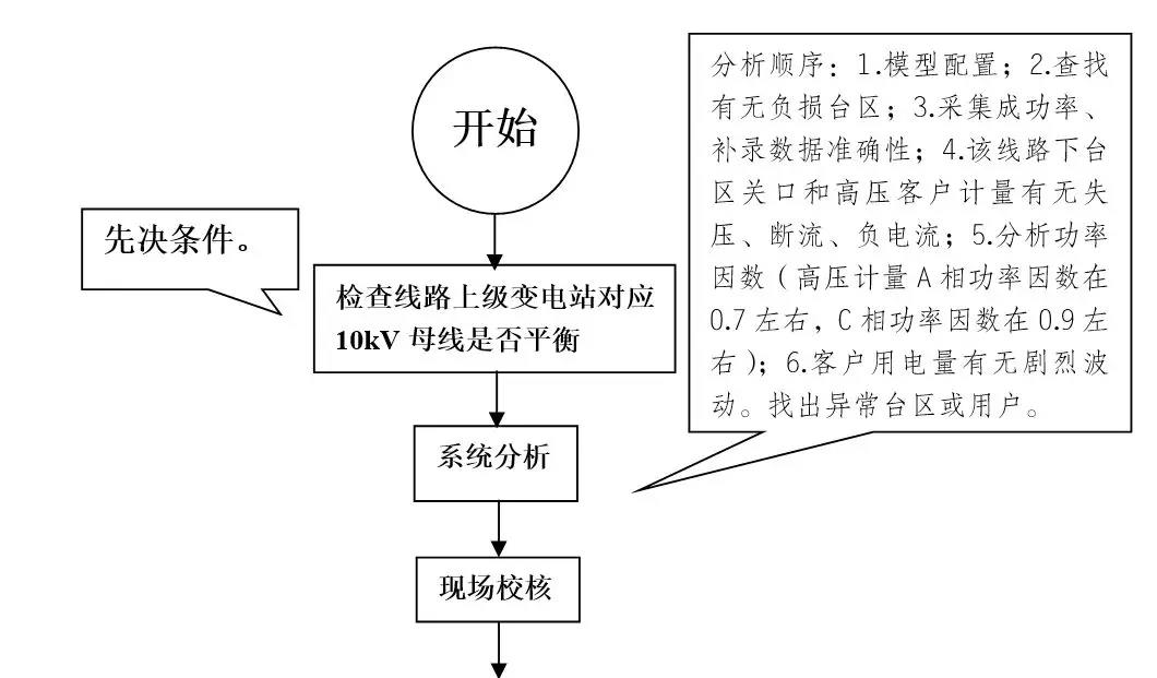 四是編制10kV線路線損流程圖。將10kV線路線損治理流程制作成圖,直觀呈現(xiàn)排查順序。