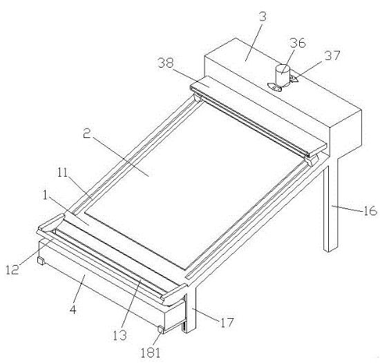 所述第一抽水管底部設(shè)有第二安裝槽,所述第二安裝槽內(nèi)設(shè)有第一安裝板,所述第一安裝板與所述第二安裝槽通過螺紋相連;所述第一安裝板上設(shè)有安裝腔,所述第一安裝板上設(shè)有與所述第二連接桿相配合的第一通孔,所述第一通孔內(nèi)壁上可轉(zhuǎn)動(dòng)連接有翻板,所述翻板為彈性材料制成;安裝腔內(nèi)可裝設(shè)濾板,對(duì)進(jìn)入到第一抽水管內(nèi)的水流起過濾作用,避免第一抽水管在抽水時(shí)將魚塘內(nèi)的雜質(zhì)抽入到蓄水箱內(nèi),對(duì)蓄水箱內(nèi)的水質(zhì)做進(jìn)一步過濾,保證塘水對(duì)光伏板的清洗效果;在第一安裝板與第二安裝槽的螺紋連接下,可方便的將第一安裝板從第二安裝槽內(nèi)取出,以便對(duì)安裝腔內(nèi)的濾板做更換,降低濾板更換難度;第一安裝板裝于第二安裝槽內(nèi)時(shí),濾板被夾持在第一安裝板和第二安裝槽之間,跌第二安裝槽與第一安裝板相互配合對(duì)濾板起固定作用,保證濾板的安裝效果;第一通孔為第二連接桿提供預(yù)留空間,降低第一安裝板安裝難度,第二連接桿穿入第一通孔內(nèi)后,翻板往下翻轉(zhuǎn),使翻板側(cè)壁抵在第二連接桿上,將第一通孔部分封閉,減小第一通孔有第二連接桿間隙,避免過多雜質(zhì)從第一通孔處進(jìn)入到第一抽水管內(nèi);將翻板用彈性材料制成,避免在將第一安裝板裝入到第二安裝槽內(nèi)使翻板多次刮擦第二連接桿,對(duì)第二連接桿起保護(hù)作用。