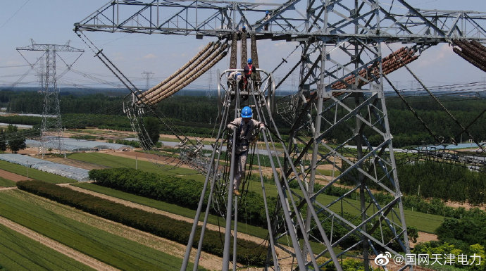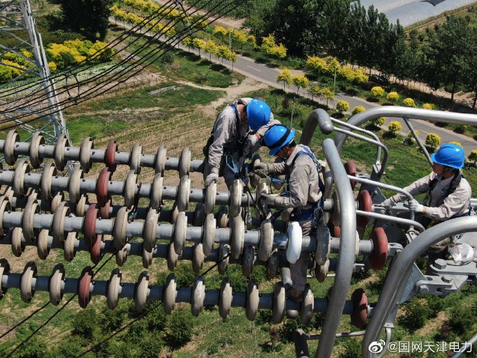 5月26日,國網(wǎng)天津檢修公司員工唐晨亮、馬騰飛在特高壓直流線路某桿塔進行自爆絕緣子更換工作,對線路缺陷進行及時消除,保證線路安全穩(wěn)定運行。 ????