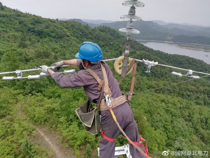 5月20日,國網(wǎng)丹江口市供電公司輸變電工程分公司員工不畏艱險,全力以赴在該市二道河村為新建35千伏丁土線安裝線路防振錘,安裝完畢后,能產(chǎn)生與導(dǎo)線振動相位相反的運動,從而使導(dǎo)線振動消除或減弱,進(jìn)一步提升電網(wǎng)供電可靠性。