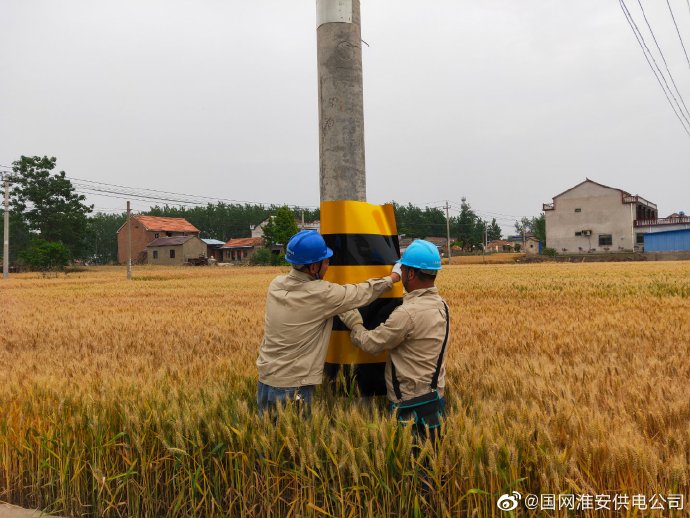 5月29日,國網(wǎng)漣水縣供電公司黃營供電所員工在黃營鎮(zhèn)旗桿村田間對(duì)拉線警示裝置開展更新加補(bǔ)工作。夏糧收割在即,該所10名臺(tái)區(qū)經(jīng)理對(duì)轄區(qū)麥田間電桿拉線警示裝置進(jìn)行查漏補(bǔ)缺,保障收割期間線路設(shè)備安全穩(wěn)定運(yùn)行。