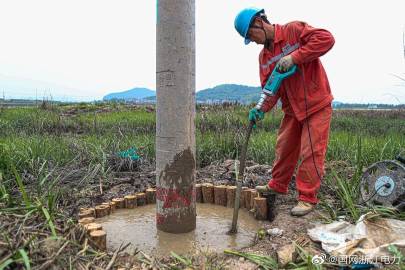 #浙江電力快訊#【供電公司開(kāi)展配網(wǎng)防臺(tái)風(fēng)專項(xiàng)整治】 5月31日,@國(guó)網(wǎng)寧??h供電公司?施工人員在寧海縣越溪鄉(xiāng)最大的海水養(yǎng)殖基地——西溪塘開(kāi)展2020年臺(tái)風(fēng)專項(xiàng)整治工程,澆筑圓形水泥加固電桿桿基。該公司計(jì)劃對(duì)全縣容易因臺(tái)風(fēng)影響發(fā)生傾斜的電桿進(jìn)行基礎(chǔ)加固。防臺(tái)風(fēng)專項(xiàng)整治工程共涉及4條10千伏配電線路、36個(gè)臺(tái)區(qū),1131處海塘桿線基礎(chǔ)和新增防風(fēng)拉線或砌筑素混凝土護(hù)坡。工程計(jì)劃于6月30日前完工,爭(zhēng)取在迎峰度夏前完成易受臺(tái)風(fēng)影響區(qū)域電桿加固工作。