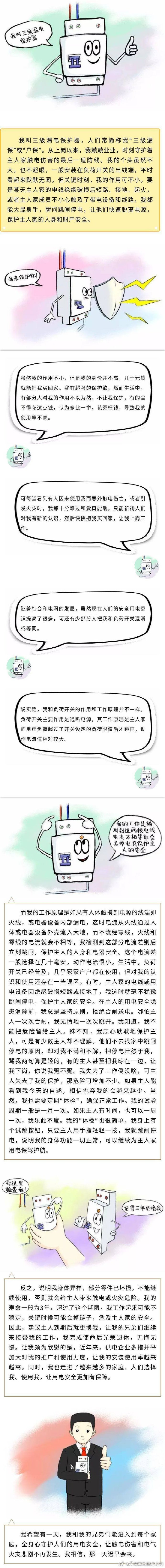 “雨季防觸,我來(lái)護(hù)你!”? 潮濕的天氣下,容易引起電線(xiàn)短路漏電,家里的電器很可能會(huì)“漏電”,觸電事后救,不如提前防,雨天防觸最省事的方法:提前裝漏電保護(hù)器!什么是漏電保護(hù)器?裝上它就一定保險(xiǎn)了嗎?為何還要給它做“定期檢查”?戳圖,來(lái)看家用漏電保護(hù)器的自述—— ????