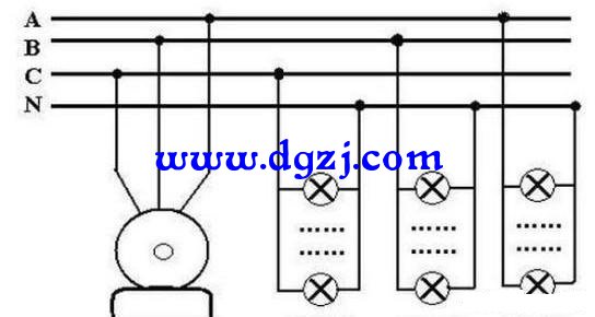 從供電電源(如變壓器)線圈的端頭引出三顆導(dǎo)線,即A相、B相、C相,再將電源三個線圈尾端連接在一起引出一顆中性線(零線),這種引出四顆線的供電方法,叫做三相四線制。