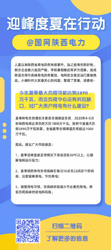 入夏以來,陜西省用電負(fù)荷持續(xù)攀升,加之疫情形勢好轉(zhuǎn),部分企業(yè)奮力追回產(chǎn)能、學(xué)校暑假推遲等多方因素,造成降溫負(fù)荷與高峰用電負(fù)荷疊加,電網(wǎng)安全穩(wěn)定運(yùn)行面臨挑戰(zhàn),面對這些情況,國網(wǎng)陜西電力如何應(yīng)對?市民用電,又該注意哪些事項(xiàng)?一起來看看
