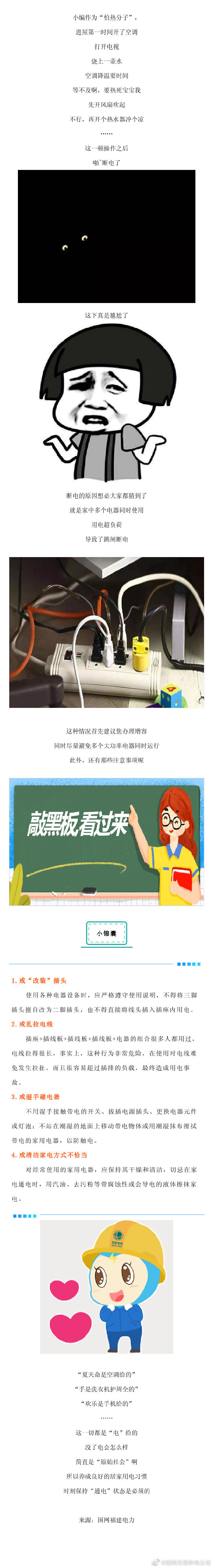 “燒烤“模式來啦,大家到家第一時間開了空調(diào)、打開電視、燒上一壺水,空調(diào)降溫要時間,等不及啊,要熱死寶寶我!先開風扇吹起不行,再開個熱水器沖個涼……這一頓操作之后!啪~斷電了!斷電的原因:用電超負荷導致了跳閘斷電,咋辦?