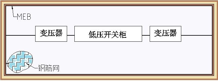 這是配電室圖片,我們看到了兩臺(tái)變壓器,一套低壓開關(guān)柜。沿著墻面有一圈用扁鋼焊接而成的閉合環(huán)路,叫做MEB。MEB的某點(diǎn)與鋼筋網(wǎng)相接,以此實(shí)現(xiàn)接地。然后,變壓器和低壓開關(guān)柜的外殼與MEB連接,由此構(gòu)成了等電位聯(lián)結(jié)。
