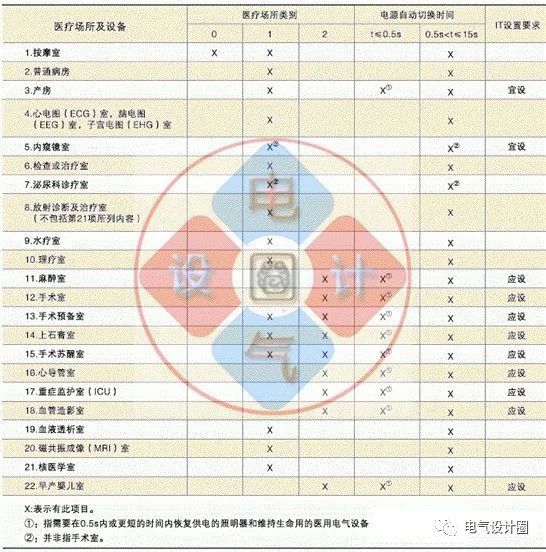 3.3、典型醫(yī)療場所低壓配電設計潔凈手術部為了保證用電可靠性,潔凈手術部根據(jù)防火分區(qū)及潔凈區(qū)的劃分,分別設置配電總柜。配電總柜設置在非潔凈區(qū),采用雙電源供電,其中一路引自應急母線,設置自動切換。后端經(jīng)UPS 后再分配至每個潔凈手術室的專用配電箱。手術室內(nèi)除手術臺驅(qū)動機構及非生命支持系統(tǒng)的電氣設備外,對于其他醫(yī)療設備,均應用醫(yī)療場所局部IT 系統(tǒng)供電方式。另外,還需要注意,設置短路及過負荷保護。