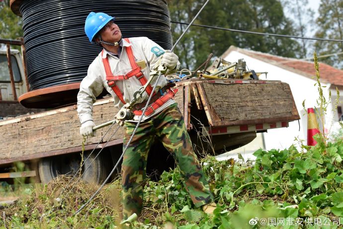 【改造農(nóng)場電網(wǎng) 服務(wù)農(nóng)墾居民】10月9日,淮安盱眙縣供電公司農(nóng)服工程隊在國營三河農(nóng)場B區(qū)二隊改造400伏線路,將優(yōu)質(zhì)電能送進農(nóng)場田間、地頭和農(nóng)戶家中,更好地服務(wù)農(nóng)業(yè)、農(nóng)民和農(nóng)村經(jīng)濟發(fā)展。