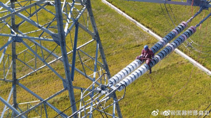 10月16日,國網(wǎng)江蘇檢修公司宿遷運(yùn)維站輸電運(yùn)檢班使用無人機(jī)對500千伏鐘雙線耐張塔瓷絕緣子PRTV噴涂施工進(jìn)行現(xiàn)場檢查。作業(yè)人員穿戴屏蔽服,手持噴槍對絕緣子表面進(jìn)行噴涂。此項(xiàng)工作提高了線路絕緣水平,為線路安全運(yùn)行保駕護(hù)航。 ????