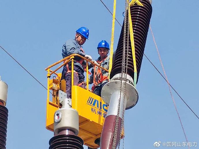 【變電站里忙施工 打好送電收官戰(zhàn)】10月23日,國網(wǎng)淄博供電公司變電工程人員在220千伏龍泉變電站進行主變高壓套管安裝工作,在保障安全的前提下加快施工進度,該工程計劃11月初送電,送電后將為周邊區(qū)域與客戶用電提供更加可靠的電力保障。 ????