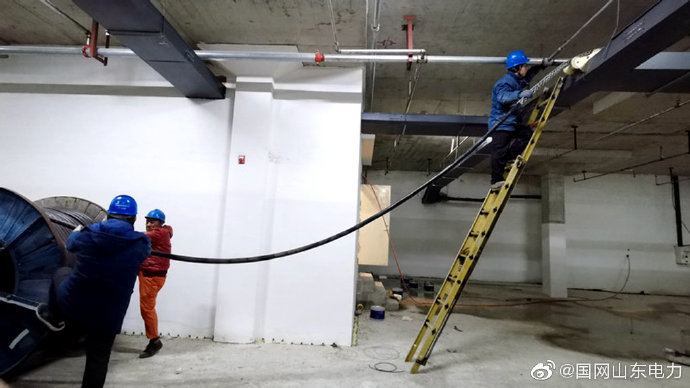 12月26日,國網(wǎng)蓬萊市供電公司為某小區(qū)配套工程敷設電纜。此次共需安裝插接箱16個,分接箱4個,表箱32個,敷設電纜700米。由于小區(qū)地下室復雜多樣,施工分兩組同時進行,一組負責電纜敷設,二組負責終端頭的安裝,既能保證已敷設電纜的安全,也大大提高了工作效率。