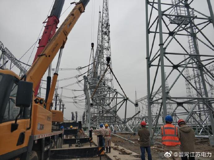 1月5日,在1000千伏東吳變電站江蘇側(cè)第三臺(tái)主變擴(kuò)建工程施工現(xiàn)場(chǎng),江蘇省送變電有限公司施工人員正按計(jì)劃進(jìn)行1000千伏格構(gòu)式構(gòu)架吊裝工作。近日來蘇州地區(qū)連日陰雨,天氣陰冷潮濕,無形中增加了構(gòu)架吊裝難度。施工人員不畏嚴(yán)寒,利用雨停間隙順利完成1000千伏格構(gòu)式構(gòu)架柱吊裝,為后續(xù)構(gòu)架梁停電吊裝爭(zhēng)取寶貴時(shí)間。