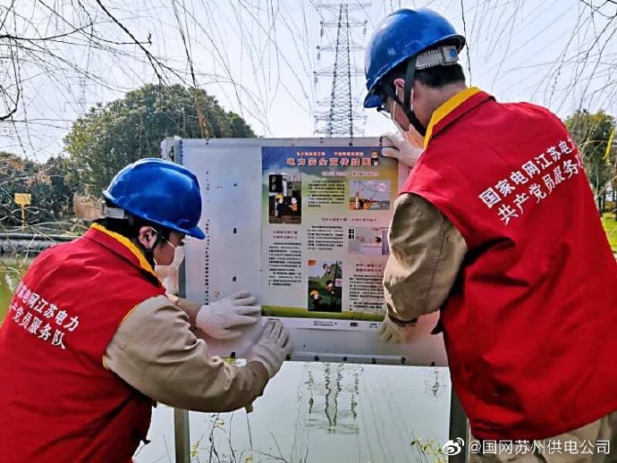 3月12日,恰逢“植樹節(jié)”之際,國網(wǎng)蘇州供電公司東太湖供電所黨員服務(wù)隊隊員來到越溪前莊村220千伏越渡線附近河邊張貼電力安全宣傳掛圖,向周邊村民宣傳電力設(shè)施保護(hù)常識及電力安全知識,引導(dǎo)村民保護(hù)電力設(shè)施安全