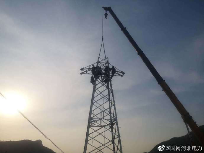 夕陽西下金燦燦,供電員工組鐵塔。3月22日,國網磁縣供電公司員工對10千伏爐峰山線路進行升級改造,以滿足西部山區(qū)經濟快速發(fā)展的用電需求。圖為該公司員工在10千伏爐峰山031線路組立鐵塔