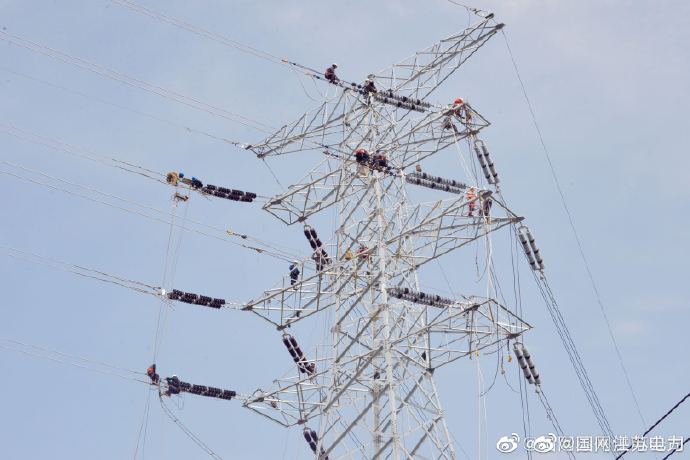 3月23日,國網(wǎng)太倉市供電公司工作人員在220千伏九慶線跨越南沿江高鐵遷改工程施工現(xiàn)場抓緊施工,當(dāng)天完成11號至14號鐵塔架放線工作,讓路國家重點(diǎn)工程建設(shè)。 ????