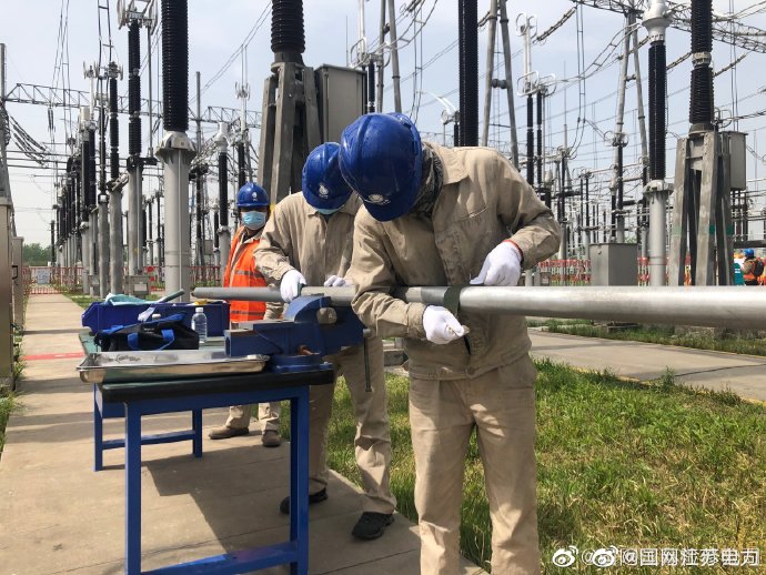 【變電站里忙碌的“小藍帽”】4月16日,國網(wǎng)江蘇檢修公司變電檢修中心修試四班員工在500千伏三汊灣變開展母線地刀放電異常處理工作。他們頭頂“小藍帽”,處理銹跡斑斑的刀閘機構(gòu),踐行“應(yīng)修必修,修必修好”的工作態(tài)度,解除電網(wǎng)風(fēng)險。 ????
