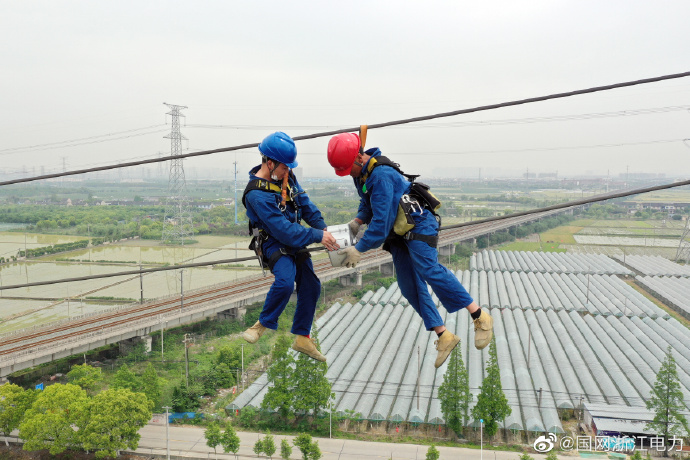 4月27日,在位于寧波鄞州姜山鎮(zhèn)的220千伏天咸線路13號桿塔線路上,國網(wǎng)寧波供電公司兩名施工人員在地面工作組的配合下,順利完成8套智慧導(dǎo)線精靈安裝和調(diào)試工作,標(biāo)志著浙江省首條動態(tài)增容線路成功投運。