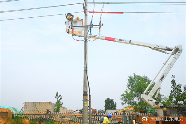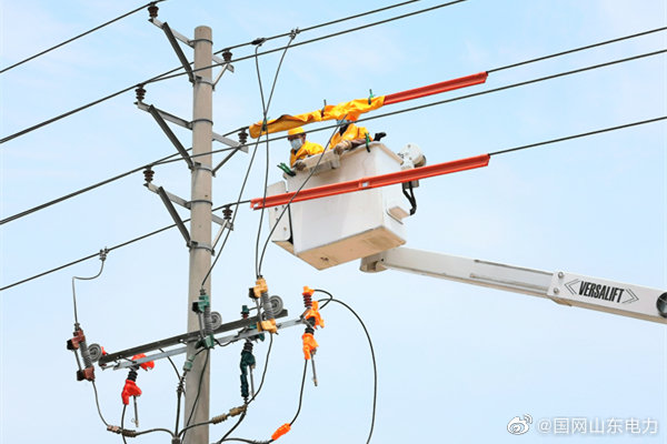 5月25日,國網(wǎng)臨沂供電公司帶電作業(yè)人員在10千伏平安一線冬支線11號電桿上為河?xùn)|區(qū)太平社區(qū)新上250千伏安變壓器帶電接火,既滿足入夏后該社區(qū)居民的用電需求,又保障沿線居民的不間斷用電。 ????