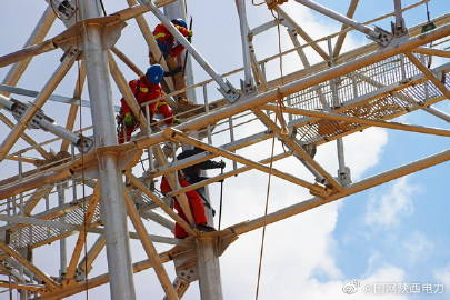 神木750千伏變電站構(gòu)架吊裝提前告捷 5月28日11時(shí)50分,陜北黃土高原上的青天薄云下,隨著一臺(tái)260噸履帶吊和一臺(tái)70噸汽車(chē)吊平穩(wěn)落勾,由@陜西送變電公司?負(fù)責(zé)施工的神木750千伏變電站750千伏構(gòu)架吊裝工作,歷時(shí)32天,提前近1個(gè)月完成計(jì)劃任務(wù)。神木750千伏輸變電工程本期750千伏構(gòu)架吊裝包括58根格構(gòu)式構(gòu)架柱、54根格構(gòu)式梁走道,鋼材總重約2050噸。最高高度61.02米,是目前陜西所有750千伏變電站構(gòu)架吊裝量最大的項(xiàng)目