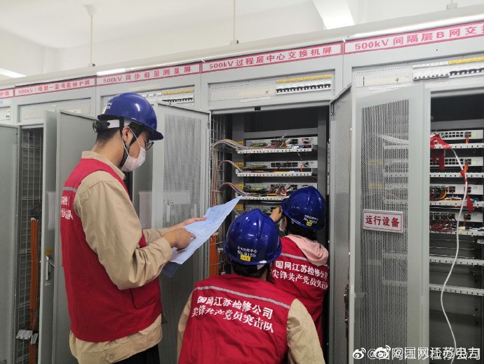 6月6日,在500千伏青洋變電站內(nèi),國(guó)網(wǎng)江蘇檢修公司變電中心二次三班黨員突擊隊(duì)開展第二階段驗(yàn)收工作。突擊隊(duì)員一邊擦拭著臉頰上的汗水,一邊認(rèn)真驗(yàn)證屏間回路及整組傳動(dòng),仔細(xì)核對(duì)后臺(tái)及錄波器信號(hào),確保設(shè)備安全可靠。 ????