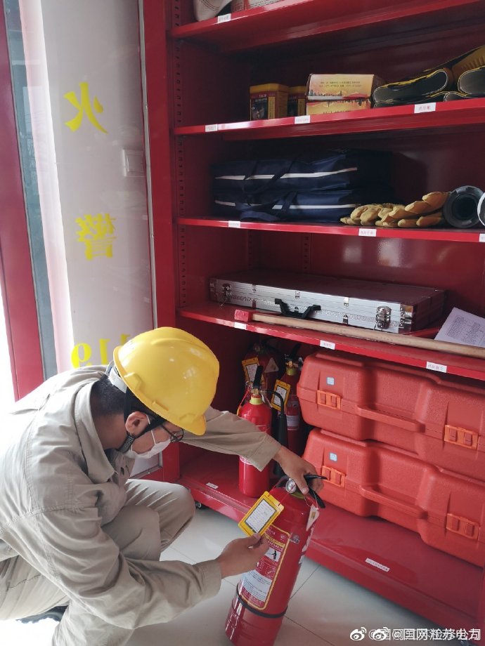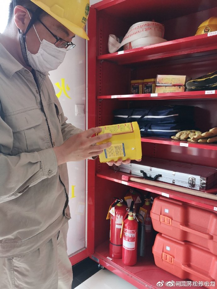 6月6日,國(guó)網(wǎng)江蘇檢修公司徐州運(yùn)維站500千伏姚湖變值班員對(duì)微型消防物資進(jìn)行全面檢查。值班員對(duì)照臺(tái)賬核對(duì)消防物資的種類和數(shù)量,仔細(xì)檢查每件消防物資的外觀、壓力值、合格期等,確保其功能正常,保障變電站消防安全。 ????