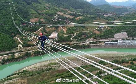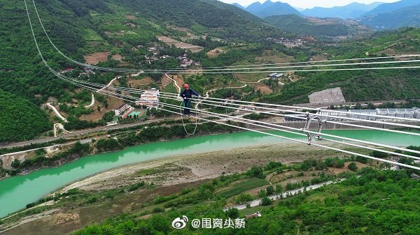 #央企復(fù)工者聯(lián)盟#?【看呆了電力工人飛躍嘉陵江,高空走鋼絲】隨著青?!幽稀?00千伏特高壓直流輸電線路工程陜西段貫通,這條綠色“空中走廊”實(shí)現(xiàn)全線貫通。6月14日,該工程陜I標(biāo)段進(jìn)入自檢驗(yàn)收階段。陜I標(biāo)段線路全長64千米,共架設(shè)鐵塔102基,80%的鐵塔位于高山大嶺、20%位于一般山地,其中35號(hào)~37號(hào)鐵塔跨越寶成鐵路和嘉陵江,檔距長度達(dá)1259米,是該標(biāo)段跨越難度最大的一段