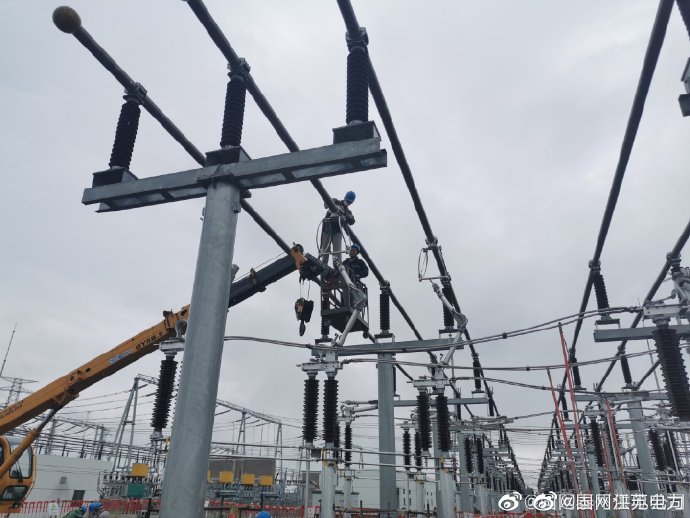 6月27日,國網(wǎng)泰州市姜堰供電公司施工人員來到新街?jǐn)U建110千伏蔣垛電氣安裝工程,運(yùn)糧工程電氣安裝現(xiàn)場,冒雨制作110千伏閘刀靜觸頭,安裝調(diào)試閘刀高空動靜觸頭,確保工程進(jìn)度,以滿足迎峰度夏用電。 ????