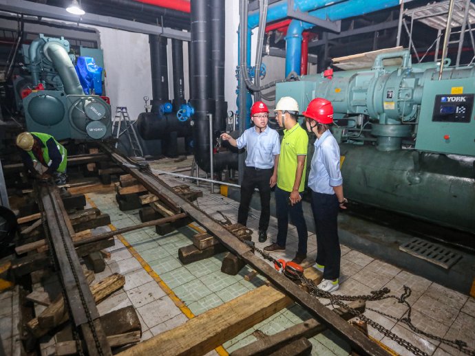6月27日,國網寧波供電公司首個園區(qū)空調節(jié)能改造項目在銀晨國際大廈地下室內順利竣工。由于運行年數已久,銀晨國際大廈園區(qū)內的空調系統水管管路及其保溫部分明顯破損,水泵、冷卻塔等設備有故障,制冷效果差,能耗壓力大。為積極響應政府提出的“節(jié)能降耗”、“能源雙控”工作要求,進一步推動綠色建筑行動,國網(寧波)綜合能源服務有限公司定制采用合同能源管理模式的節(jié)能改造方案,通過對中央空調系統的節(jié)能改造及智控管理,大幅降低用戶能耗。趁著端午假期,該公司加班加點對園區(qū)內的空調系統進行了改造升級,全力保障銀晨國際園區(qū)內租戶能度過清涼一夏。