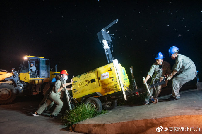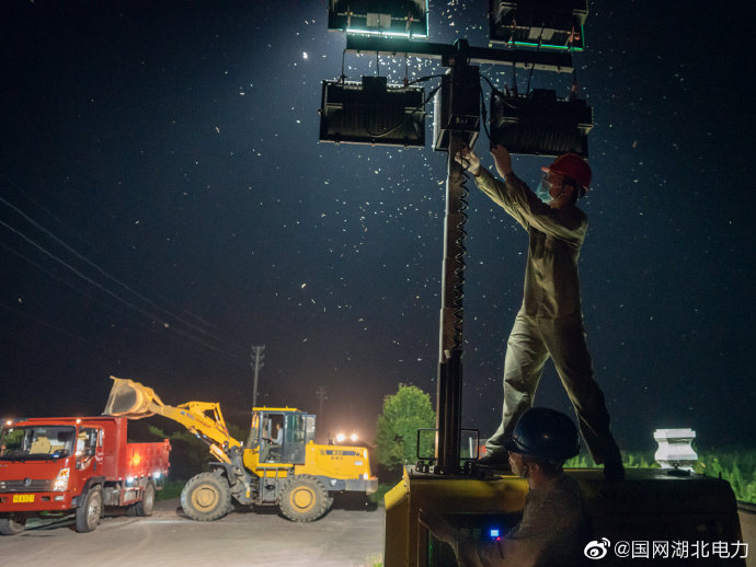 “一、二、三,嘿呀……”7月10日凌晨,武漢漢南區(qū)供電公司的工作人員喊著號(hào)子,奮力將移動(dòng)照明燈塔推到路邊高臺(tái)之上,為銀蓮湖堤段通津河堤搶險(xiǎn)加固兩個(gè)砂石裝載點(diǎn)提供現(xiàn)場照明,引來蚊蟲大軍的“密集轟炸”,大的飛蟲鉆進(jìn)袖口、衣領(lǐng),小的蚊蟲飛進(jìn)鼻孔、嘴巴,有同事戲稱:大家收到了蚊蟲贈(zèng)送的“大紅包”。