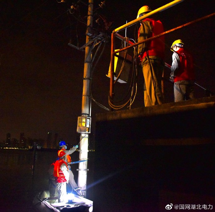 7月13日,受連日暴雨影響,長江漢口站(武漢關(guān))水位線上漲至28.77米,武漢港11碼頭桿上供電設(shè)施距離水面已很近,若出現(xiàn)故障將直接影響長江行洪和防汛值守人員用電安全。14日凌晨1時,國網(wǎng)武漢供電公司計量室黨員突擊隊通過小艇進行“水上作業(yè)”,歷時4小時完成武漢港11碼頭上的桿上計量裝置及配電設(shè)備上移工作,確保防汛用電安全。