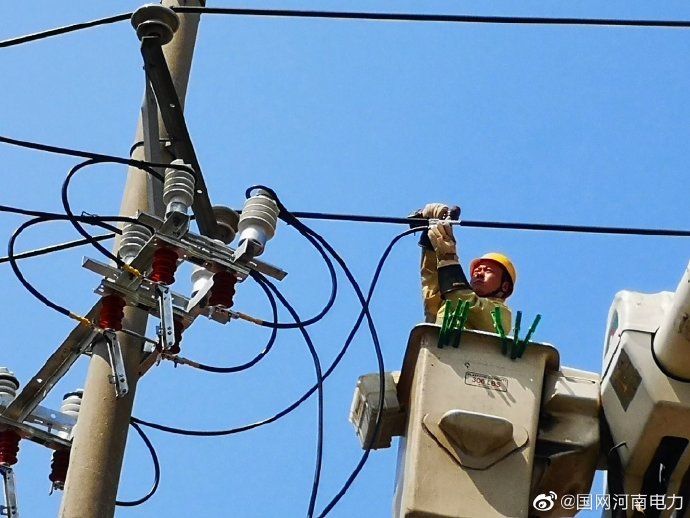 8月28日,雖已入秋,可“秋老虎”持續(xù)發(fā)威,室外溫度高達(dá)35攝氏度。國網(wǎng)長葛市供電公司帶電作業(yè)班堅(jiān)守在高溫下,僅用一個小時(shí)完成10千伏金剛線永基倉儲臺區(qū)接引線工作。(趙娣 桂小鋒) ????