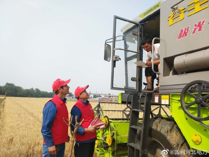 芒種忙忙割,農(nóng)家樂啟鐮。芒種過后,夏糧小麥全面進入收割時節(jié)。6月8日,國網(wǎng)邯鄲市肥鄉(xiāng)區(qū)供電公司“太行之光”黨員服務(wù)隊,深入田間地頭向收割機機主、農(nóng)民朋友,宣傳安全用電知識以及麥收期間防火相關(guān)知識,確保夏糧顆粒歸倉。