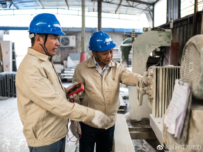 【服務(wù)石材加工戶】10月24日,國網(wǎng)靖江市供電公司靖城供電所員工周紅君、侯衛(wèi)東來到王記石材加工戶,檢查用電線路,了解用電需求,排查安全用電隱患,為石材加工戶的用電安全把好關(guān)。 ????