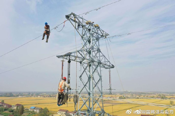 【金秋電網(wǎng)施工忙】 10月29日,在220千伏永泰變雙回T接富強至劉莊110千伏輸電線路建設(shè)現(xiàn)場,國網(wǎng)鹽城市大豐區(qū)供電公司作業(yè)人員正在50多米高空組立54號鐵塔及安裝部分鐵塔附件等工作,為工程11月底竣工投產(chǎn)夯實基礎(chǔ)。 ????