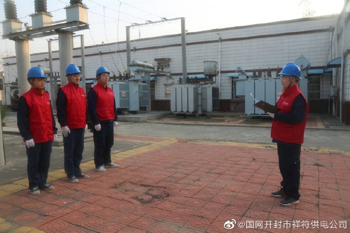 11月10日,在開封市祥符供電公司35千伏獨樂崗變電站秋檢現(xiàn)場,變電檢修黨員服務隊隊長姬亞楠在召開班前會。