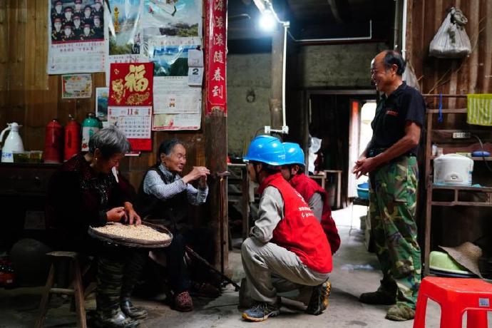 11月17日,在松陽縣四都鄉(xiāng)陳家鋪村,國網(wǎng)松陽縣供電公司紅船共產(chǎn)黨員服務(wù)隊為陳珠美老人家里檢查用電線路,并叮囑老人注意用電安全。隨著冬季用電高峰的到來,該公司針對轄區(qū)內(nèi)當(dāng)前留守老人多的現(xiàn)狀,推出親情式、零距離服務(wù)舉措,建立專門的特殊客戶檔案,構(gòu)建“親情式”服務(wù)體系,定期開展電力暖心上門服務(wù),為留守老人家庭安全用電提供保障。