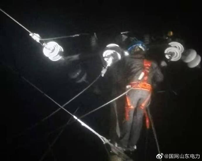 【深夜雨中搶修 保障居民用電】11月18日晚,受惡劣天氣影響,牟平境內(nèi)10千伏云溪線20-20號(hào)桿至20-24號(hào)桿之間遭雷擊斷線,國(guó)網(wǎng)煙臺(tái)市牟平區(qū)供電公司姜格莊供電所立即組織搶修人員連夜冒雨趕赴現(xiàn)場(chǎng),在保障作業(yè)人員安全的前提下登桿搶修,第一時(shí)間恢復(fù)送電。 ????