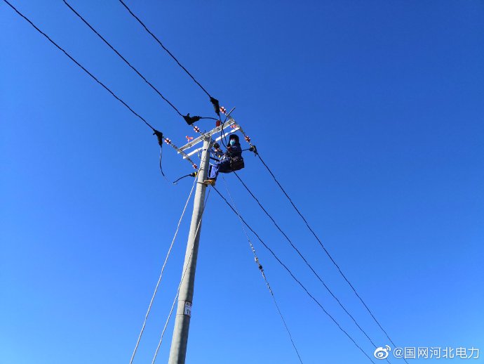 天空湛藍寒風凜冽,線路檢修送溫暖。12月7日,國網滄州市渤海新區(qū)供電公司員工在石玻5713線進行線路檢修,為居民冬季取暖保駕護航。(田浩 龐勇) ????