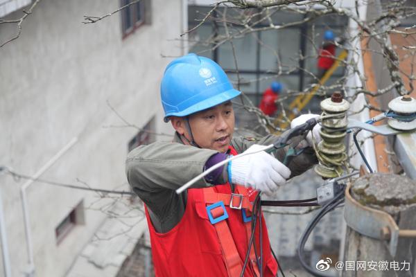 12月4日,在安徽黃山休寧縣汪村鎮(zhèn)石屋坑村,國(guó)網(wǎng)休寧縣供電公司為扶貧項(xiàng)目新建的民宿裝表接電。