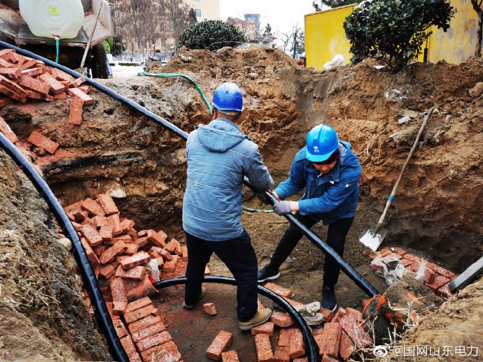 【冒嚴寒敷設電纜 服務充電樁建設】12月18日,國網(wǎng)煙臺市牟平區(qū)供電公司 工作人員為長途汽車站新上充電樁配電工程敷設入地電纜,該工程新上630千伏安變壓器一臺,敷設電纜160余米,制作電纜頭兩處,充電樁建成投運后,為市民綠色出行提供便利。 ????
