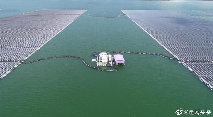 項(xiàng)目占水域面積約等于50個(gè)足球場(chǎng)大小,共安裝光伏組件144420片。項(xiàng)目配置能量管理系統(tǒng),可根據(jù)負(fù)荷變化要求進(jìn)行調(diào)節(jié),實(shí)現(xiàn)白天用光伏供電、夜間用水電站供電、或者光伏和水電同時(shí)發(fā)電的運(yùn)行模式,使連續(xù)發(fā)電成為可能。