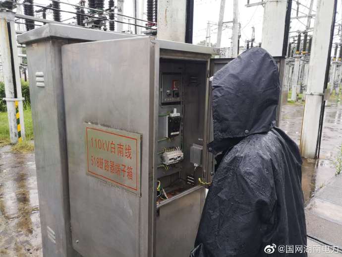 6月10日16時,株洲地區(qū)突降暴雨,國網(wǎng)株洲供電公司變電運維四班汪鶯、覃仕樾迅速趕到220kV白馬垅變電站進行防汛特巡,重點對變電站電纜溝、排水通道、室外端子箱進行全面檢查,確保變電設(shè)備安全可靠運行。