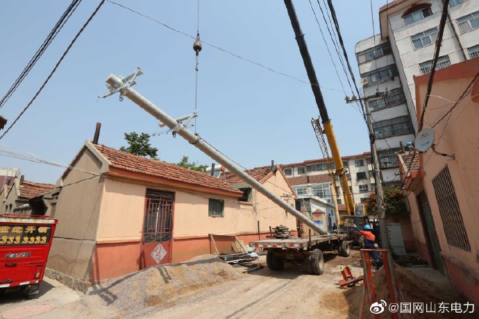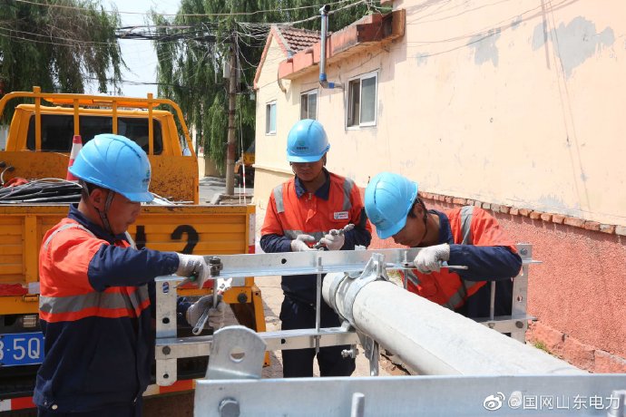 6月13日,國網(wǎng)膠州市供電公司員工來到大同新村對10千伏云曉線進行臺區(qū)線路改造。拆除了原來部分10米0.4千伏電桿,更換為同桿架設的15米電桿,并為架設完成大同東3號臺配變供電。在高溫來臨之前,及時為膠州老城區(qū)百姓提供堅強電力保障。