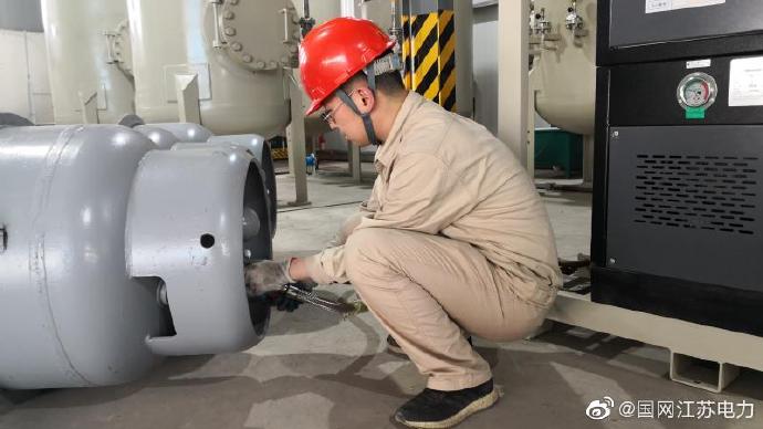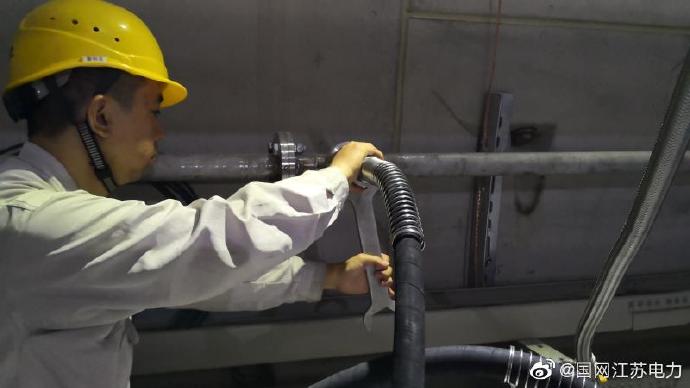6月15日,蘇通GIL綜合管廊工程氣務(wù)工作正式啟動。江蘇省送變電有限公司組織施工人員,采用集中供氣站充氣方案對泰吳1線南、北段和泰吳2線南、北段的四個(gè)工作面同時(shí)開展氣務(wù)工作。利用地面集中供氣站和敷設(shè)于管廊內(nèi)的5.8公里輸氣管道進(jìn)行充氣具有傳統(tǒng)充氣方式無可比擬的優(yōu)點(diǎn):無需氣瓶運(yùn)輸、出氣質(zhì)量高、充注時(shí)間短、降低安全風(fēng)險(xiǎn)、減少人力成本等,是管廊工程建設(shè)的又一“神兵利器”。