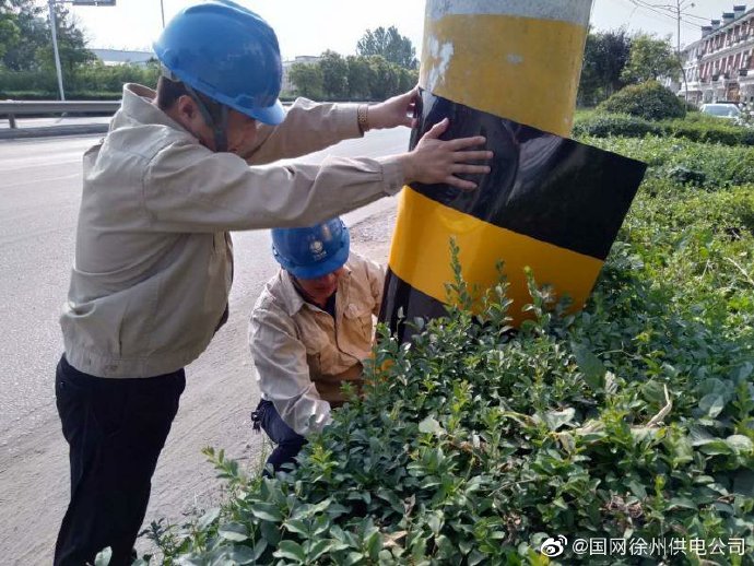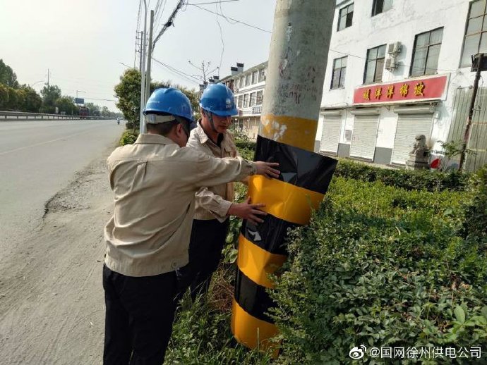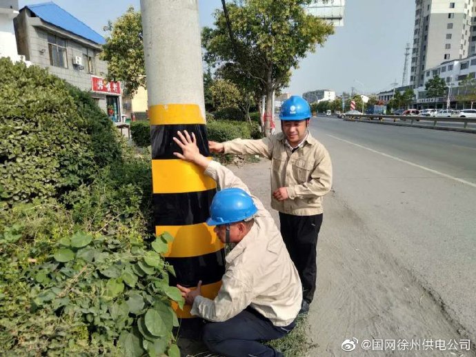 為加強電力設施保護 ,避免路旁電桿受到車輛碰撞受到傷害。6月17日,沛縣供電公司張莊供電所組織運維人員對路旁電桿加裝反光防護貼,以此提醒過往車輛,防止電桿被撞,確保了電力設施不受到外力破壞。
