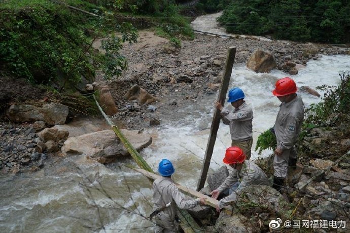 6月22日,因受強(qiáng)降雨導(dǎo)致福建省邵武市張厝鄉(xiāng)祝嶺村路段爆發(fā)山洪,致使該路段道路及供電被中斷。接到消息后邵武市供電公司的工作人員第一時(shí)間組織4部車、30余人的搶修隊(duì)伍前往受災(zāi)路段,由于滑坡道路阻斷,搶修人員只能徒步前往搶修地點(diǎn),為了方便人員和設(shè)備通過(guò),他們還架起一座簡(jiǎn)易的橋。面對(duì)暴雨的突擊,供電蜀黍早已提前部署好,風(fēng)雨再大,有他們?cè)谇胺阶o(hù)航。