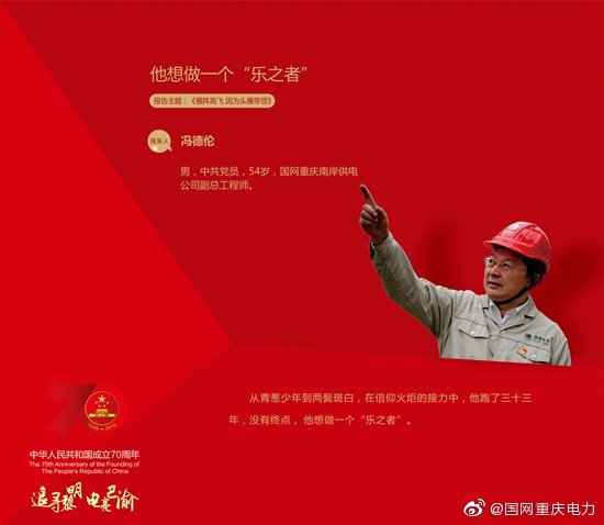 54歲的馮德倫是網(wǎng)重慶南岸供電公司副總工程師,不知不覺中已經(jīng)在電力戰(zhàn)線工作了34年,干過市、區(qū)兩級(jí)電網(wǎng)調(diào)度、線路、營(yíng)銷等多個(gè)部門的一線和管理工作,從滿頭青絲到花白頭發(fā),從單打獨(dú)斗到帶領(lǐng)團(tuán)隊(duì),他收獲良多,感受良多,他常對(duì)伙伴們說,都說自己是“國(guó)家電網(wǎng)人”,但可知道這其中“國(guó)家”二字的份量?