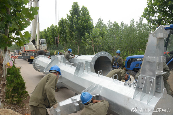 【新建線路助力地方經(jīng)濟(jì)發(fā)展】7月10日,國網(wǎng)莒縣供電公司施工人員在莒縣劉官莊鎮(zhèn)10千伏通達(dá)線富強(qiáng)支線組立9號轉(zhuǎn)角鐵塔。工程投運(yùn)后,將大大提升迎峰度夏期間線路供電能力,為當(dāng)?shù)仄髽I(yè)生產(chǎn)提供充足電力供應(yīng)。 ????