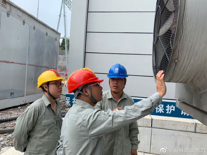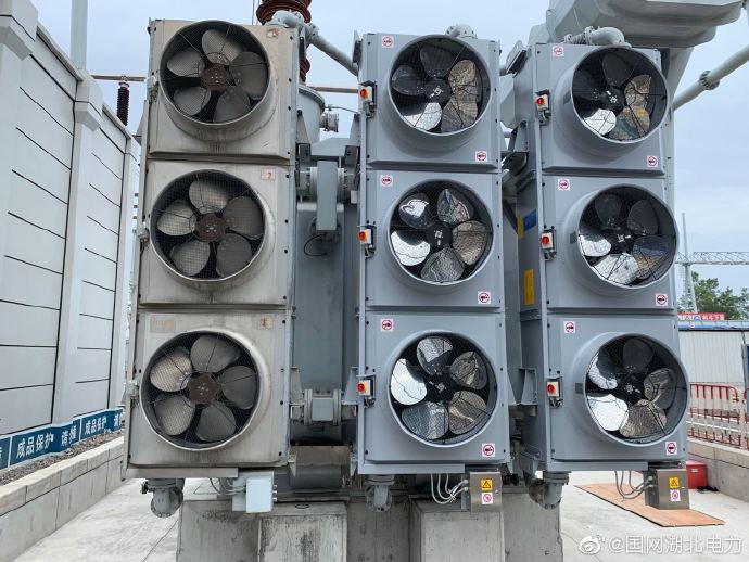 【為老主變換上新風(fēng)扇】7月16日上午,國(guó)網(wǎng)湖北省恩施東輸變電工程現(xiàn)場(chǎng),主變?cè)O(shè)備廠家對(duì)樊城已運(yùn)行長(zhǎng)達(dá)16年之久的舊#1主變進(jìn)行風(fēng)扇更換。通過(guò)更換兩組主變冷卻器風(fēng)扇,確保在炎炎夏日恩施東變電站投產(chǎn)運(yùn)行時(shí),主變也能吹上清涼風(fēng),過(guò)一個(gè)清涼夏季!